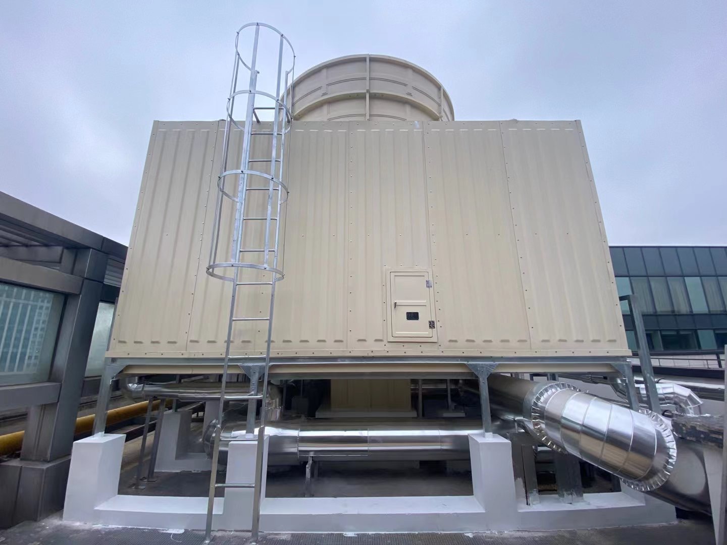 在上海,我司自主研发的第三代DFPZ高效节能点滴式多风机冷却塔广泛应用于客户的生产工厂中。与同行类似产品相比具有更高效,更环保,更低能耗等特点,并获得国家权威机构的认证,投入市场后,广受好评。
